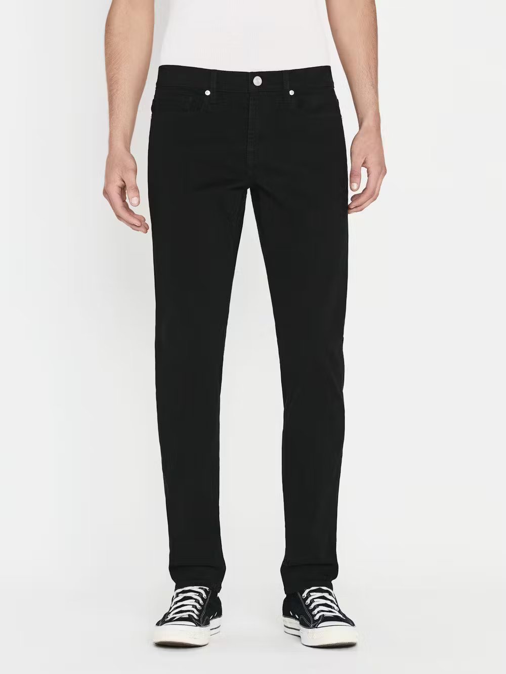 FRAME's signature mid-rise, slim-fit silhouette, cut from soft, sustainable brushed twill. These pants are made with 74% Lyocell, a low-impact fiber that uses less water to produce. Breathable and less prone to wrinkles, they feature the same 5-pocket styling as your favorite denim, for a casual, pulled together look. Style yours with everything from tees and hoodies to button-downs and blazers.