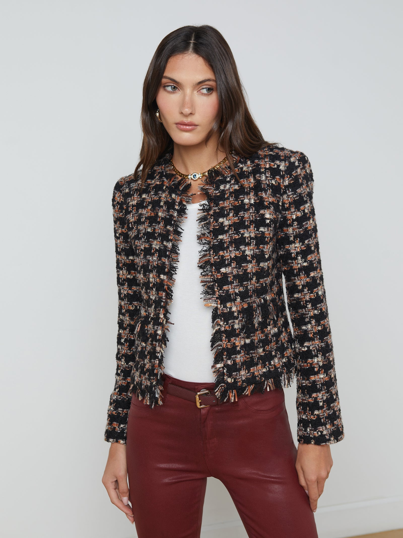 Angelina is our bestselling open-front blazer, featuring a strong shoulder and subtly shaped waist for a balanced fit.