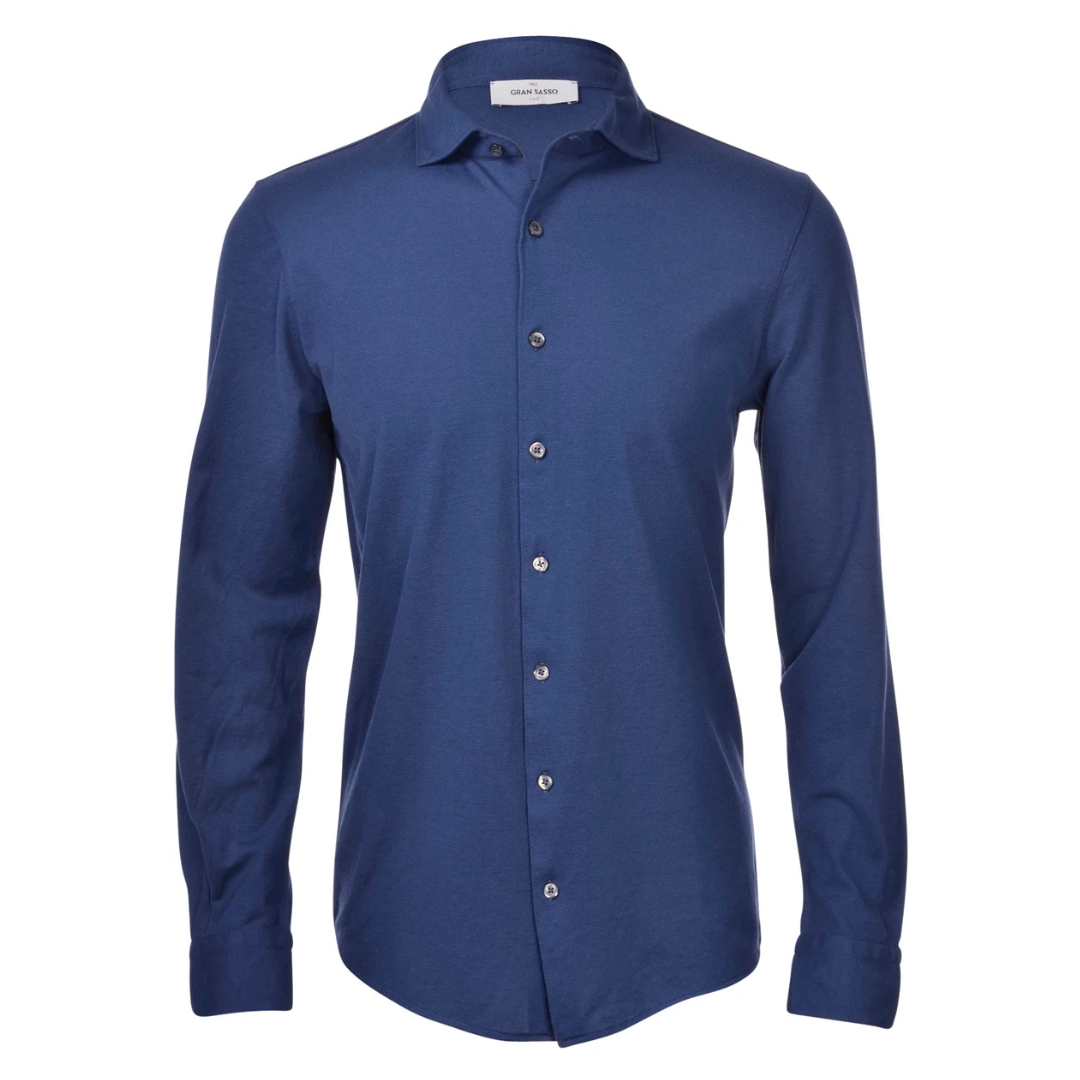 Ultralight cotton piqué shirt from Gran Sasso. The French collar and rounded hem make it suitable for sophisticated yet trendy outfits. Fashion fit.