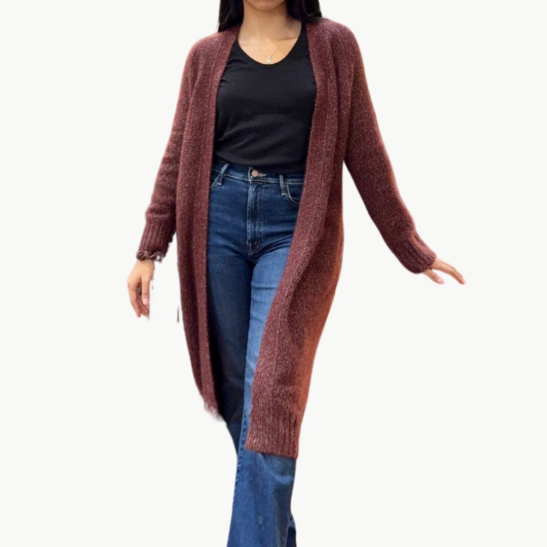Wrap yourself in effortless style with the Vivian Midi Cardigan from Square One Cashmere designed for both versatility and comfort, this cardigan features ribbed detailing on the trim of the sleeves and bottom, and an open front, making it easy to layer over any outfit. Crafted from a luxurious blend of soft, breathable silk and cashmere, it's perfect for transitioning between seasons. Whether you're dressing up for an occasion or adding a touch of elegance to your everyday look, the Vivian Midi Cardigan is your go-to choice for sophisticated layering.